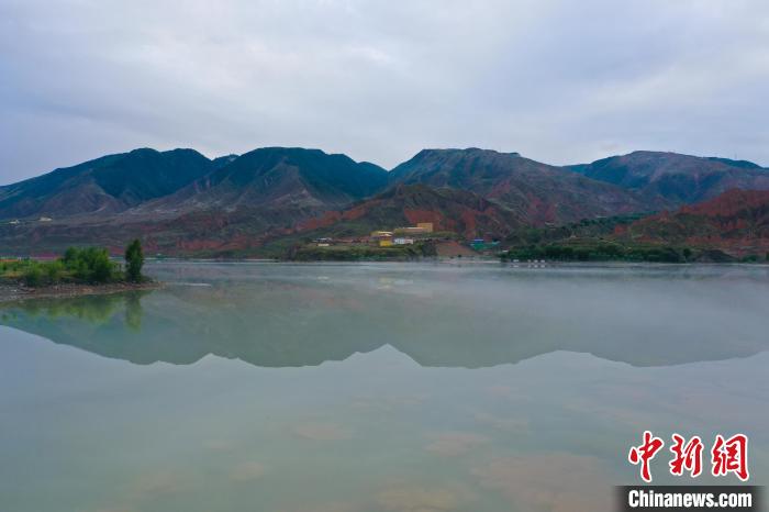 航拍降雨過后,黃河青海尖扎段的河面上升起薄霧。馬銘言 攝