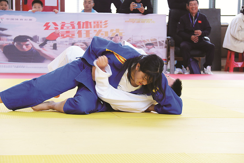 摔、抱、勾、壓……競賽場上,身著白色和藍色柔道服的各地運動員們行賽前禮儀后便展開激烈對抗;一道道藍白身影彼此纏斗膠著,都在尋找一招克敵致勝的良機。賽場下,隊友們鼓勁聲澎湃,教練們指導(dǎo)聲高亢,觀眾們激動不已。場上場下各種噴張的聲音匯成一組激蕩人心的競技交響曲,好不青春熱血。