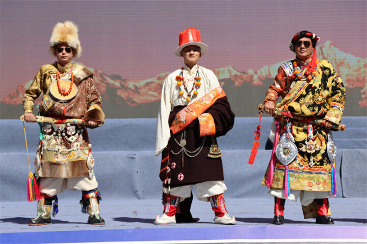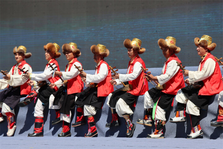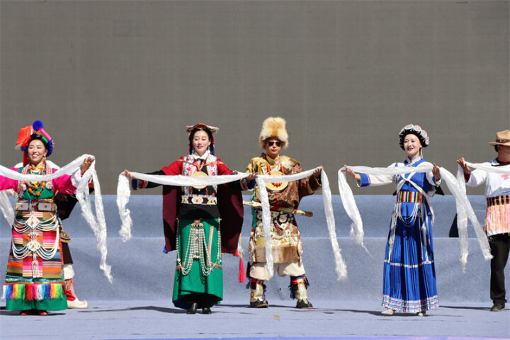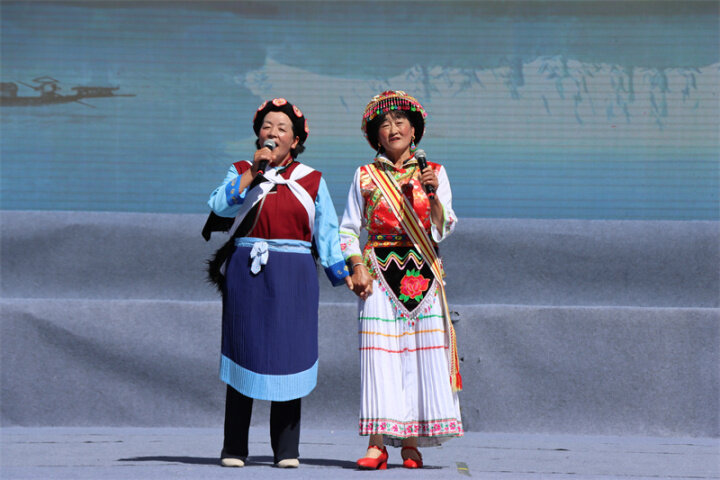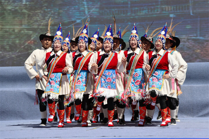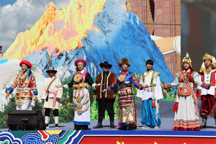 來自迪慶州文化館、俏夕陽藝術團、雍恰碩藝術團等的演員們帶來了《阿尺目刮》《犁牛調》《洛吉葫蘆笙打跳》等歌舞表演和走秀,為現場群眾帶來了一場文化盛宴,充分展現了迪慶州各族兒女共同團結進步、共同繁榮發(fā)展的時代風貌。