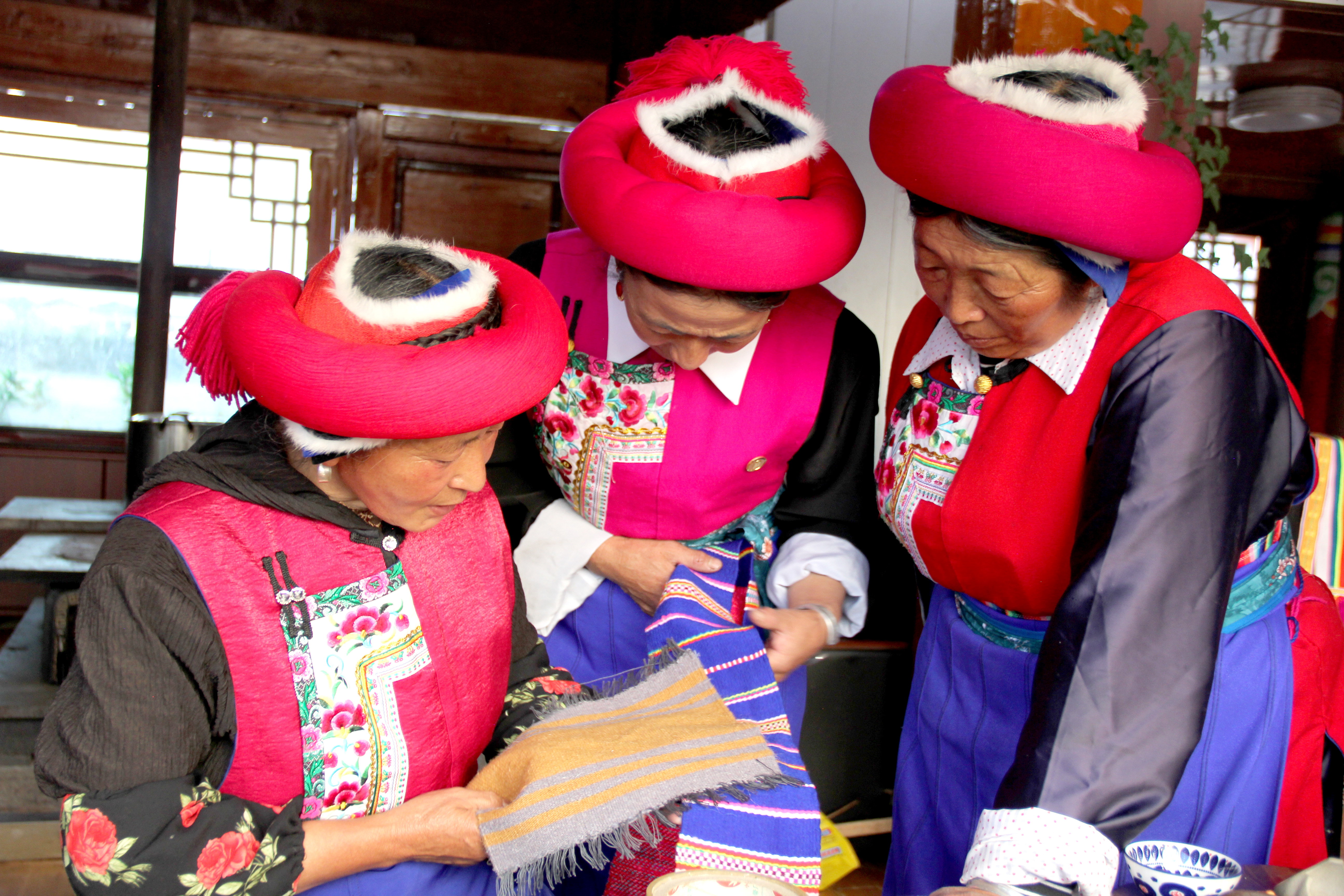 近日,香格里拉市建塘鎮(zhèn)紅坡村“和美鄉(xiāng)村 綻放藝彩”馬幫文化手工藝品制作培訓(xùn)會(huì)在呀啦索民間走馬俱樂(lè)部舉行,20余名符合參訓(xùn)條件、有手工制作創(chuàng)業(yè)就業(yè)意愿的婦女參加培訓(xùn)。圖為參訓(xùn)婦女拿起熱銷產(chǎn)品討論分析其制作工藝和改良方法。