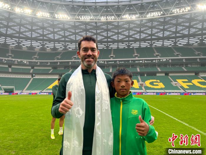 圖為玉樹(shù)足球少年尕瑪龍周與北京國(guó)安隊(duì)主教練里卡多·蘇亞雷斯合影。旦周尼瑪 攝