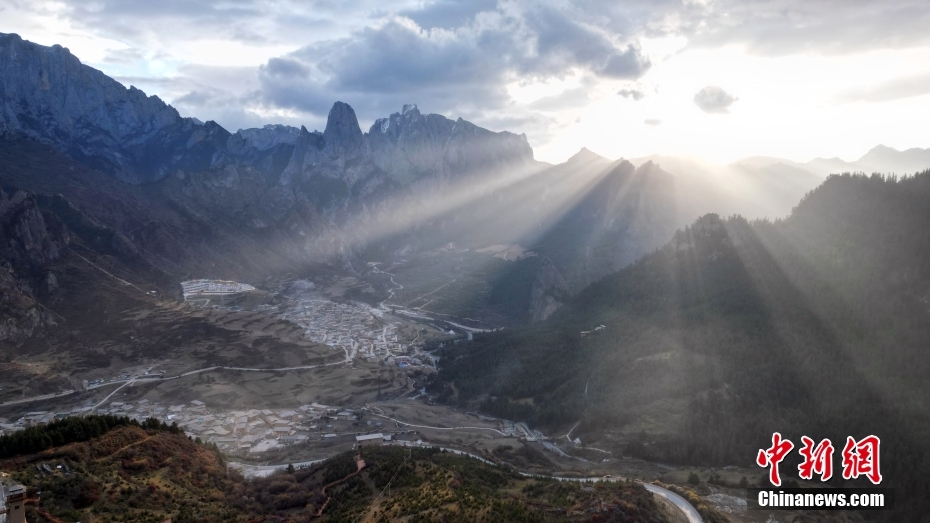 11月3日,航拍甘肅省甘南藏族自治州迭部縣扎尕那景區(qū)。(無人機照片)中新社記者 九美旦增 攝