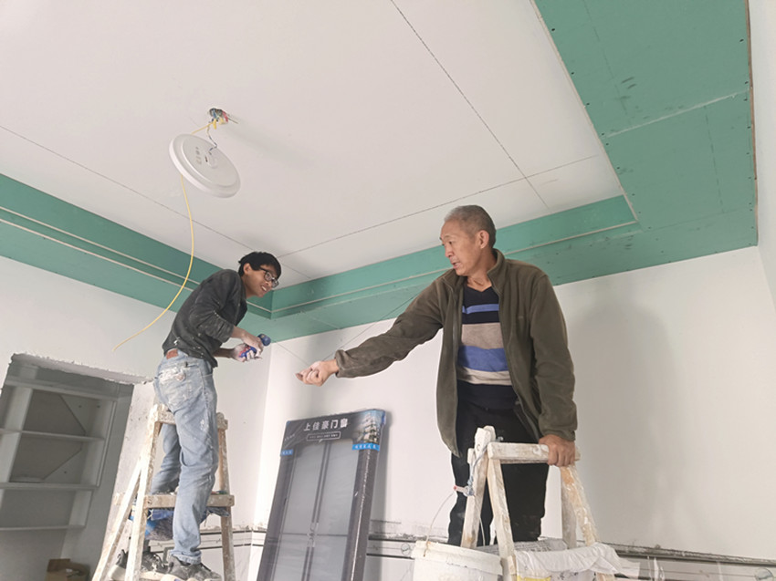 村民王福玉的房子也是一套175平方米的大房間。室內(nèi)堆滿了砂石,工人們正在抓緊裝修?!拔掖蛩阌靡粋€(gè)月的時(shí)間完成裝修,準(zhǔn)備在春節(jié)前搬新家?!蓖醺S裥判臐M滿地說,“我和老公都會(huì)泥水匠,今年我們就在安置點(diǎn)建設(shè)工地務(wù)工,每天的工資有320元,目前收入合計(jì)有十五六萬元。”