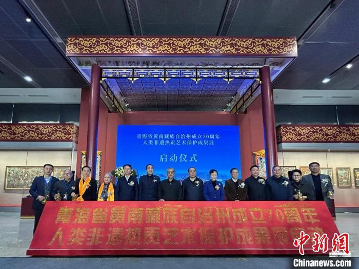 青海省黃南藏族自治州成立七十周年·人類非遺熱貢藝術(shù)保護(hù)成果展,27日在中國工藝美術(shù)館·中國非物質(zhì)文化遺產(chǎn)館正式開幕。