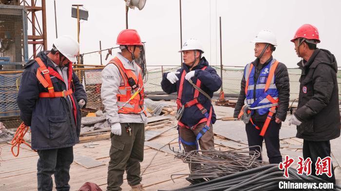 圖為技術(shù)人員指導(dǎo)封頂工作。韓奎忠 攝