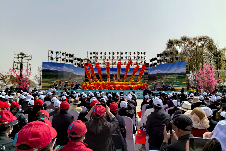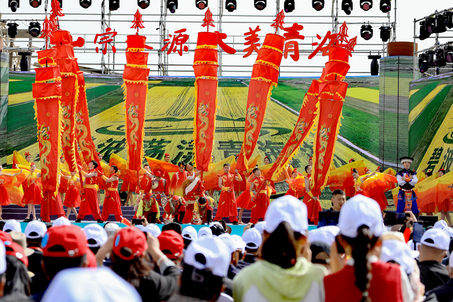 圖為“山宗水源·大美青?!贝杭疚幕糜蜗盗谢顒郁吆D稀べF德第十八屆黃河文化旅游季開幕式現(xiàn)場。新華網(wǎng) 黃開森 攝