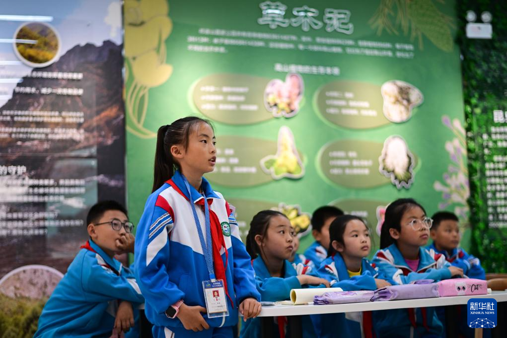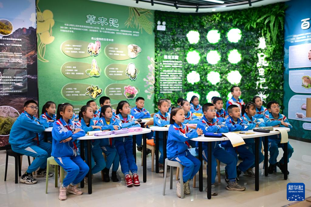 5月13日,門源縣第二小學(xué)四年級(jí)學(xué)生在自然教室里上課。新華社記者 張龍 攝