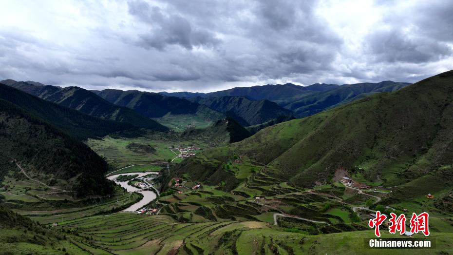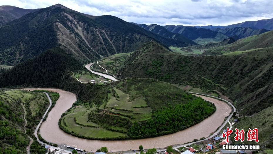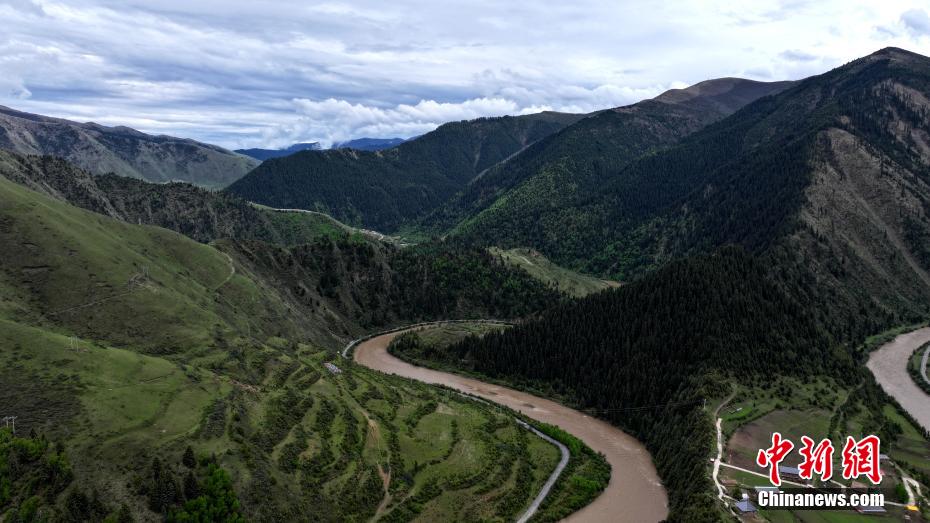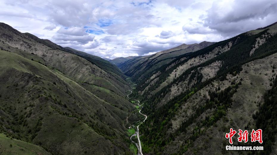 5月31日,青海省果洛藏族自治州班瑪縣以南39公里處的子木達溝綠樹成蔭。紅軍長征經過班瑪時多次來往于此溝,故民眾改子木達溝為“紅軍溝”,以示紀念。班瑪是中國工農紅軍二萬五千里長征唯一經過青海的地方。(無人機照片)薛蒂 攝