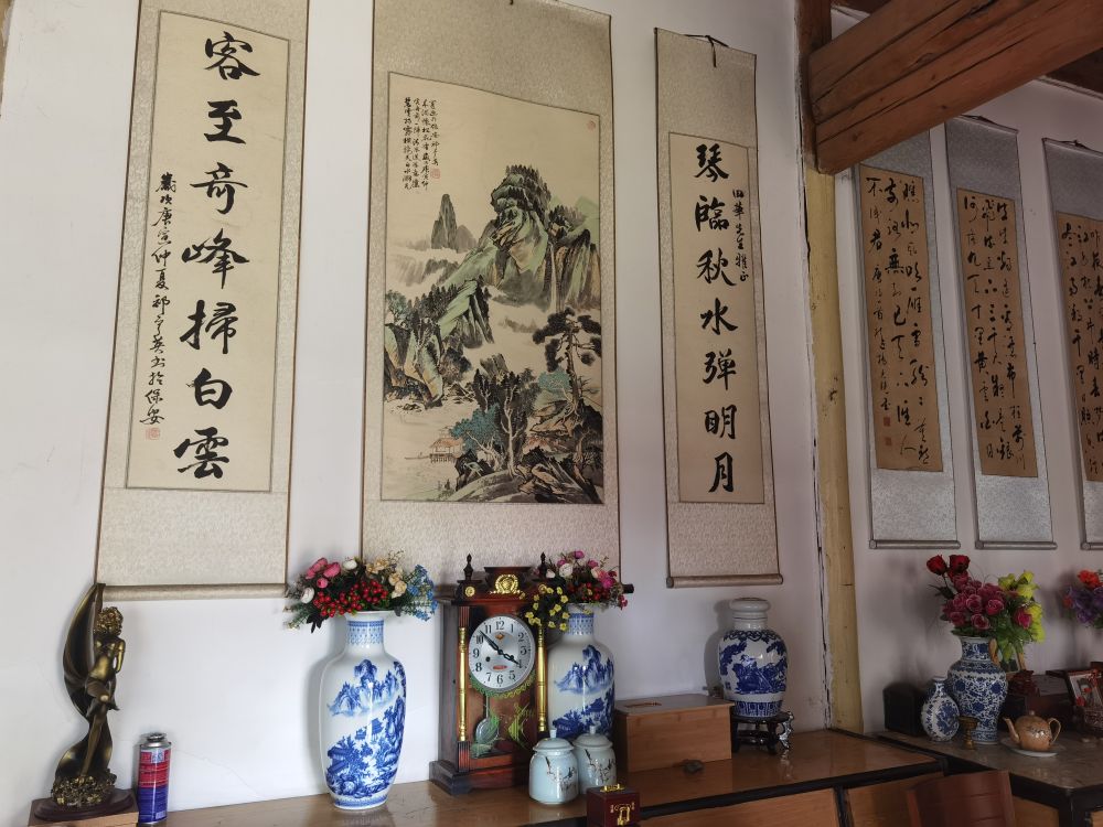 61歲土族退休教師田華的家,已有百年歷史。這所老宅完整保留了青海河湟地區(qū)農村莊廓院的傳統(tǒng):四合院內四面靠墻建房,庭院中花木繁茂;正房內墻上掛有古訓字畫,條幾上置古瓶、鏡架和銅制供器,古色古香,頗有耕讀傳家遺風。