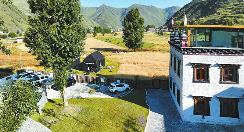在新都橋鎮(zhèn)新一村,8月初,帕瑞南卡度假酒店開始試運行。這里按照五星級酒店標(biāo)準(zhǔn)打造,沿河共有19間套房,客人預(yù)定排期已到3天后?!叭?90余戶村民,家家戶戶都吃‘旅游飯’,共有上百家酒店民宿,但高端民宿還是頭一個?!毙乱淮宕逦瘯敝魅卧骼氛f。