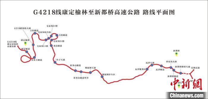 雅葉高速康新段線路示意圖。蜀道集團(tuán)供圖