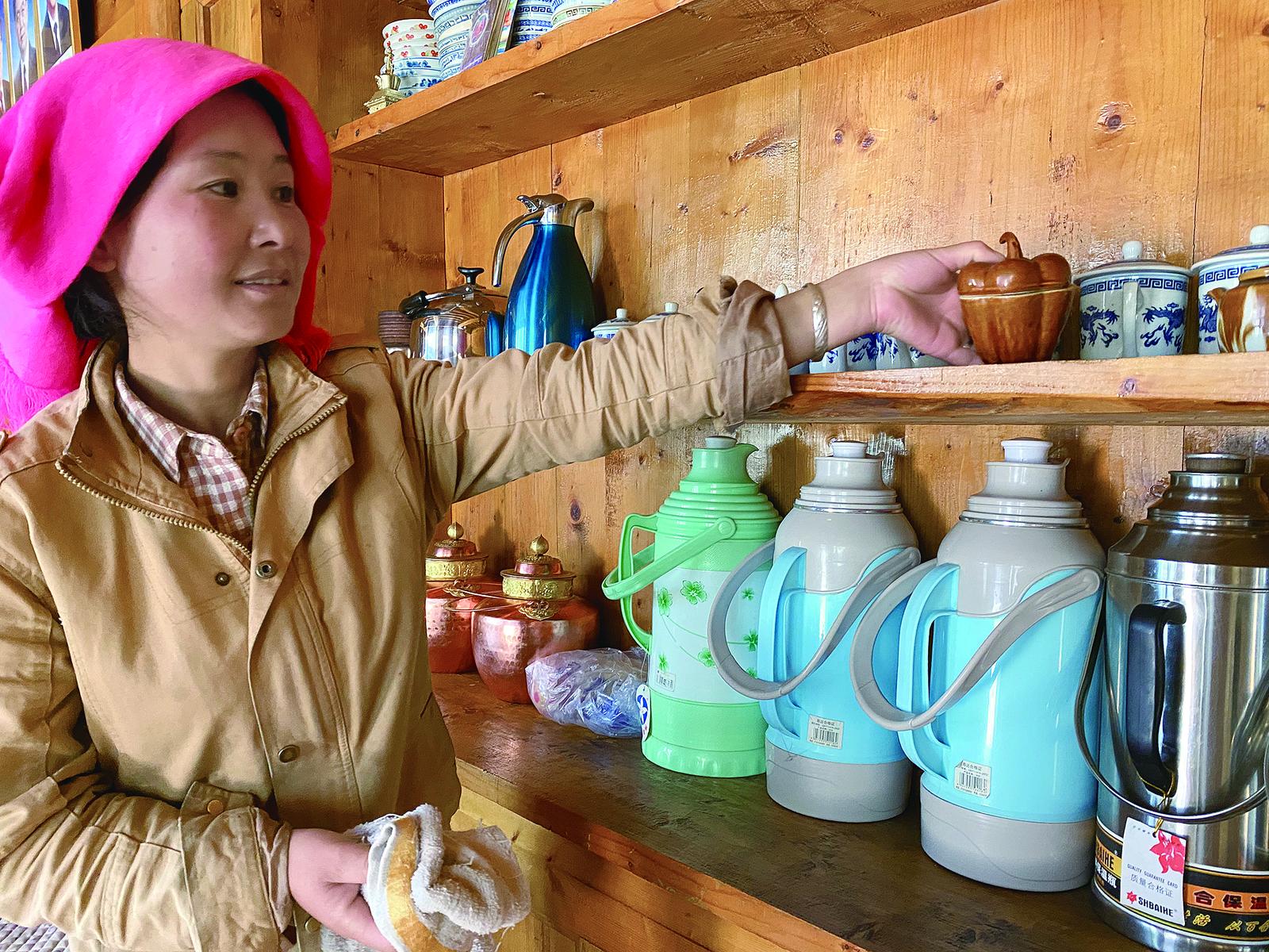 隨便走進一戶人家,濃濃的人間煙火氣息撲面而來。老人身披薄毯,愜意地坐在庭院里曬著太陽,眼里滿是安詳與滿足;家里的婦女看著鍋里“咕嘟咕嘟”沸騰的羊肉湯,手中的針線也一刻不停地在藏族服飾間來回穿梭;孩子們嬉笑奔跑,三五成群地做著游戲,他們的笑聲回蕩在整個社區(qū),與紅旗飄揚的聲音交織在一起,譜寫出一曲東格爾社區(qū)獨有的幸福樂章。