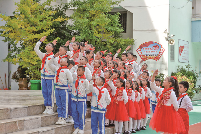 活躍提升組織生活也是少先隊(duì)工作強(qiáng)基固本的重要環(huán)節(jié)。通過健全少先隊(duì)階梯式成長(zhǎng)激勵(lì)體系;全面實(shí)施分批入隊(duì)、分段教育、分級(jí)激勵(lì)和推優(yōu)入團(tuán);依托“紅領(lǐng)巾獎(jiǎng)?wù)隆备采w隊(duì)中教育全過程等措施,全市14至15周歲新入團(tuán)團(tuán)員經(jīng)由少先隊(duì)組織推優(yōu)入團(tuán)達(dá)100%。此外,全覆蓋開展“開學(xué)第一堂隊(duì)課”、主題隊(duì)課活動(dòng),規(guī)范舉行入隊(duì)儀式等,讓少先隊(duì)員組織意識(shí)和光榮感全面增強(qiáng)。