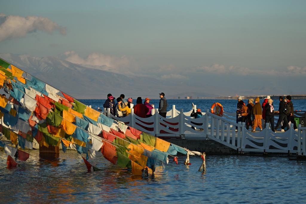 2024年10月18日,游客在青海湖二郎劍景區(qū)游玩。新華社記者 張龍 攝
