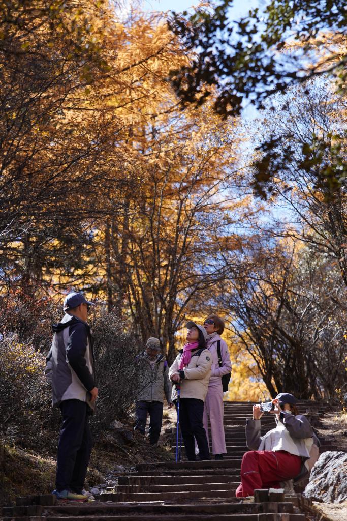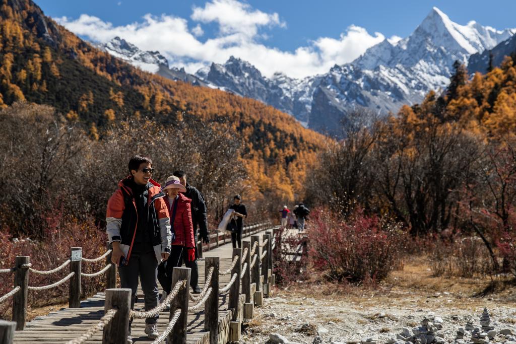 10月31日,游客在四川省甘孜藏族自治州稻城亞丁景區(qū)內(nèi)游覽。新華社記者 胥冰潔 攝