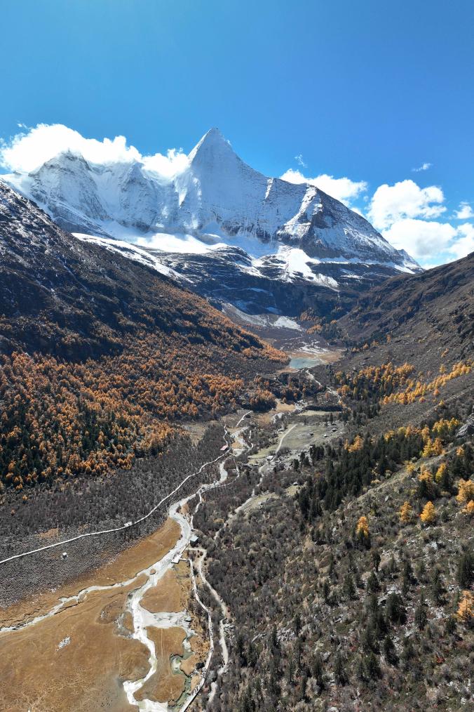10月31日在四川省甘孜藏族自治州稻城亞丁景區(qū)拍攝的夏諾多吉雪山(無人機(jī)照片)。新華社記者 胥冰潔 攝