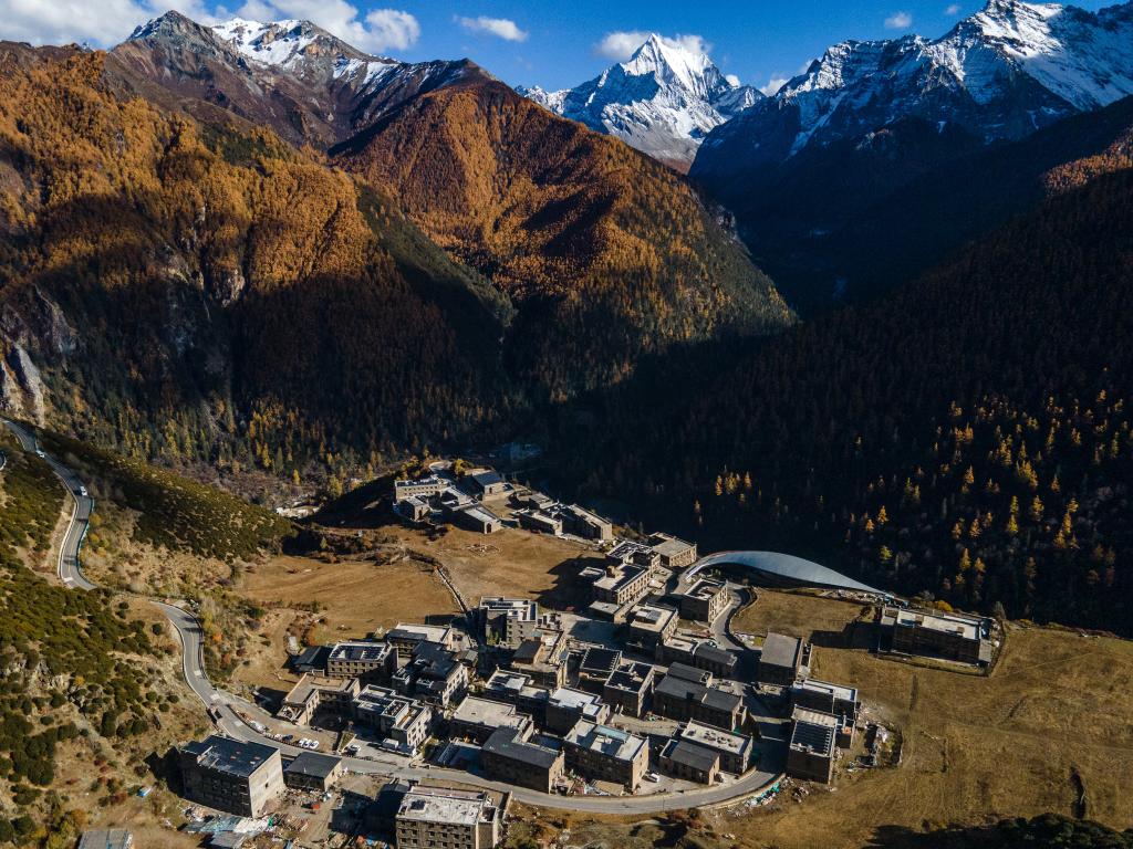 這是位于四川省甘孜藏族自治州稻城亞丁景區(qū)內(nèi)的亞丁村(10月31日攝,無人機(jī)照片)。新華社記者 儲加音 攝