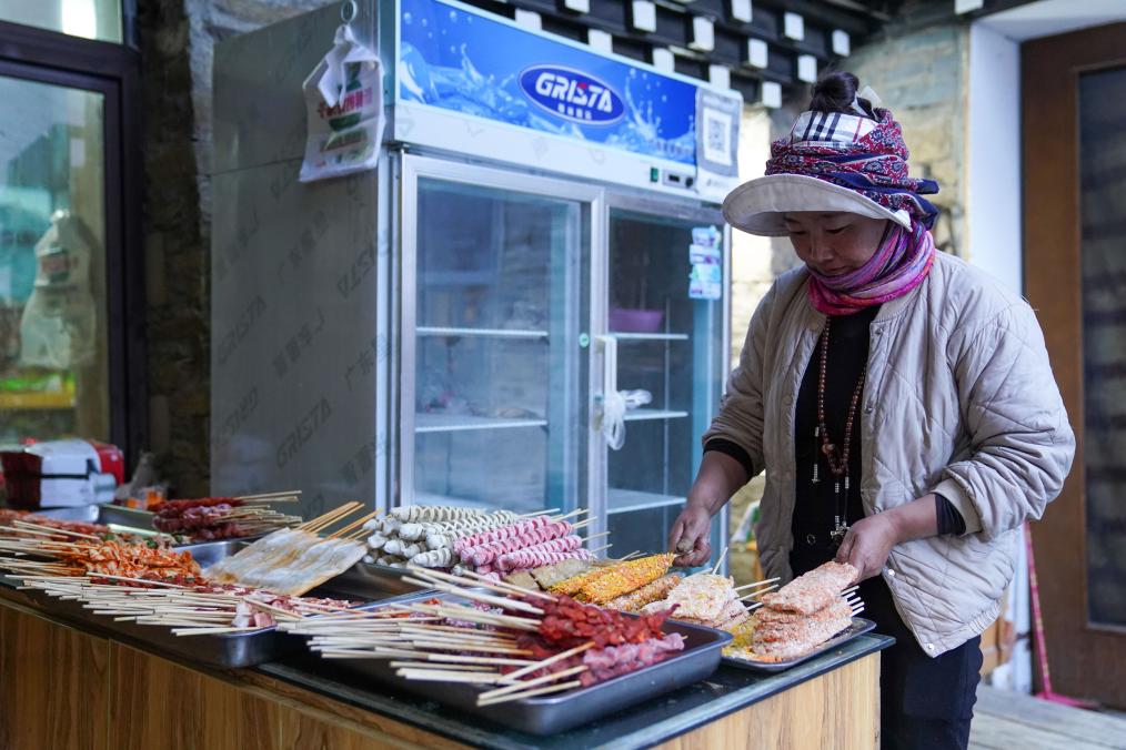 10月31日,在四川省甘孜藏族自治州稻城亞丁景區(qū)內(nèi)的亞丁村,民宿工作人員為游客準(zhǔn)備晚飯。新華社記者 胥冰潔 攝