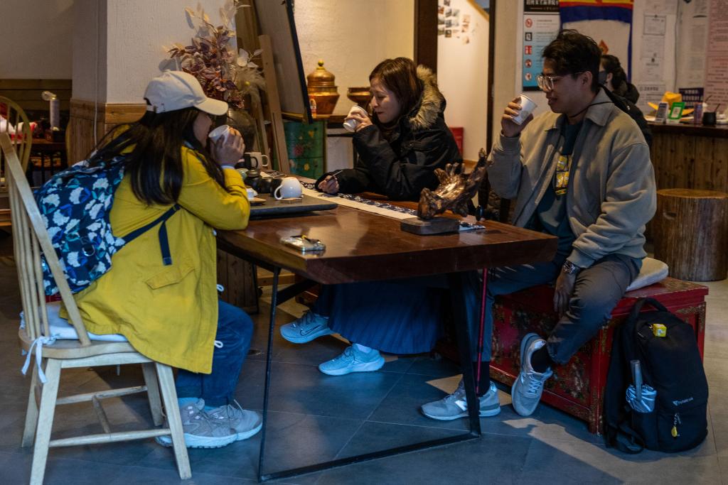 10月31日,在四川省甘孜藏族自治州稻城亞丁景區(qū)內(nèi)的亞丁村,游客在一家民宿休息。新華社記者 儲加音 攝
