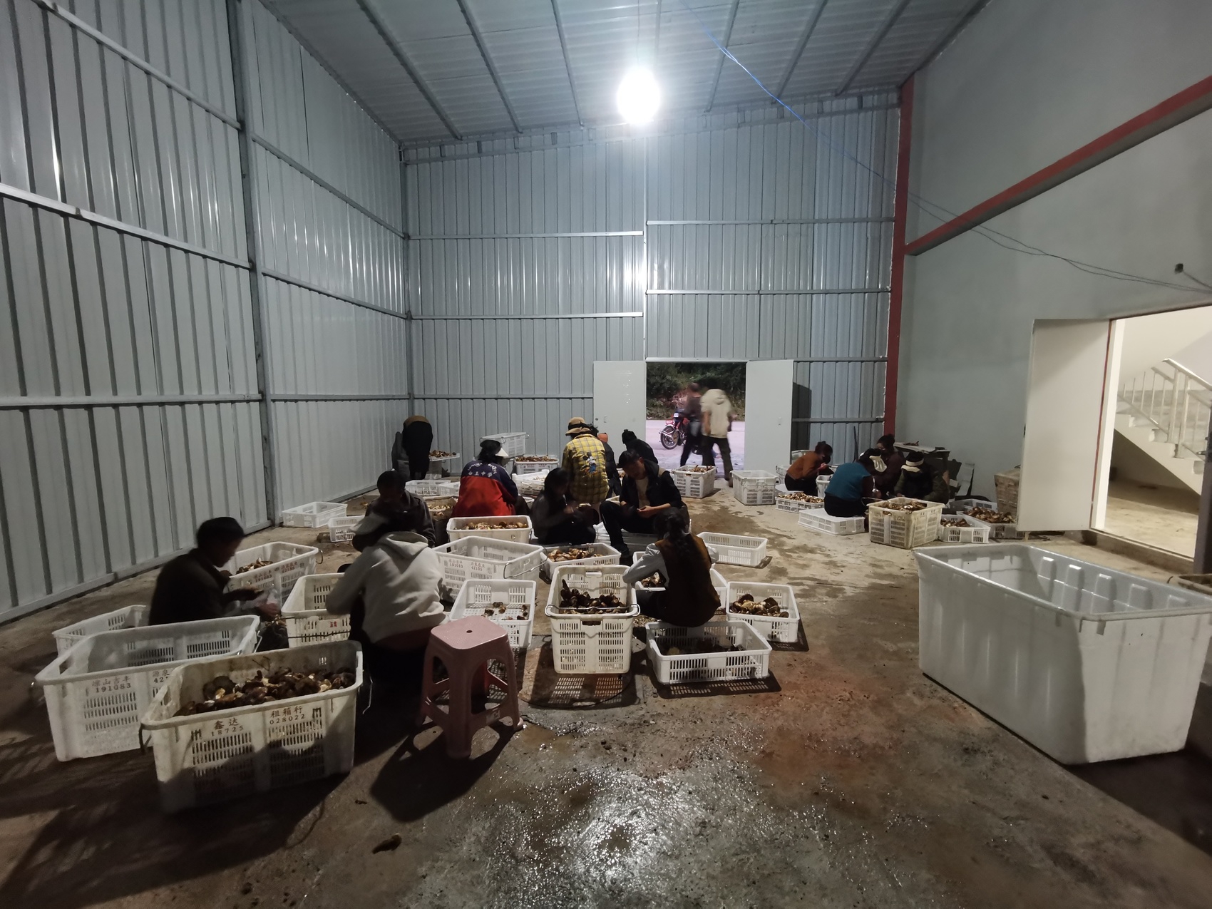 德西村的菌類加工車間內(nèi),工人們在進行初步分揀。受訪者供圖