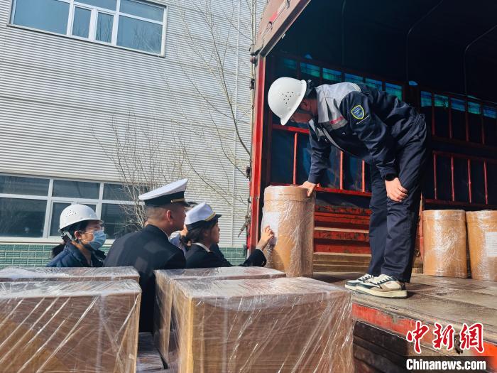 圖為海關關員開展貨物出口申報前的監(jiān)管工作。 中新網(wǎng)記者 孫睿 攝