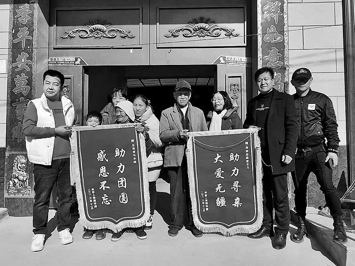 團圓儀式上,尋親家庭為志愿者贈送錦旗。