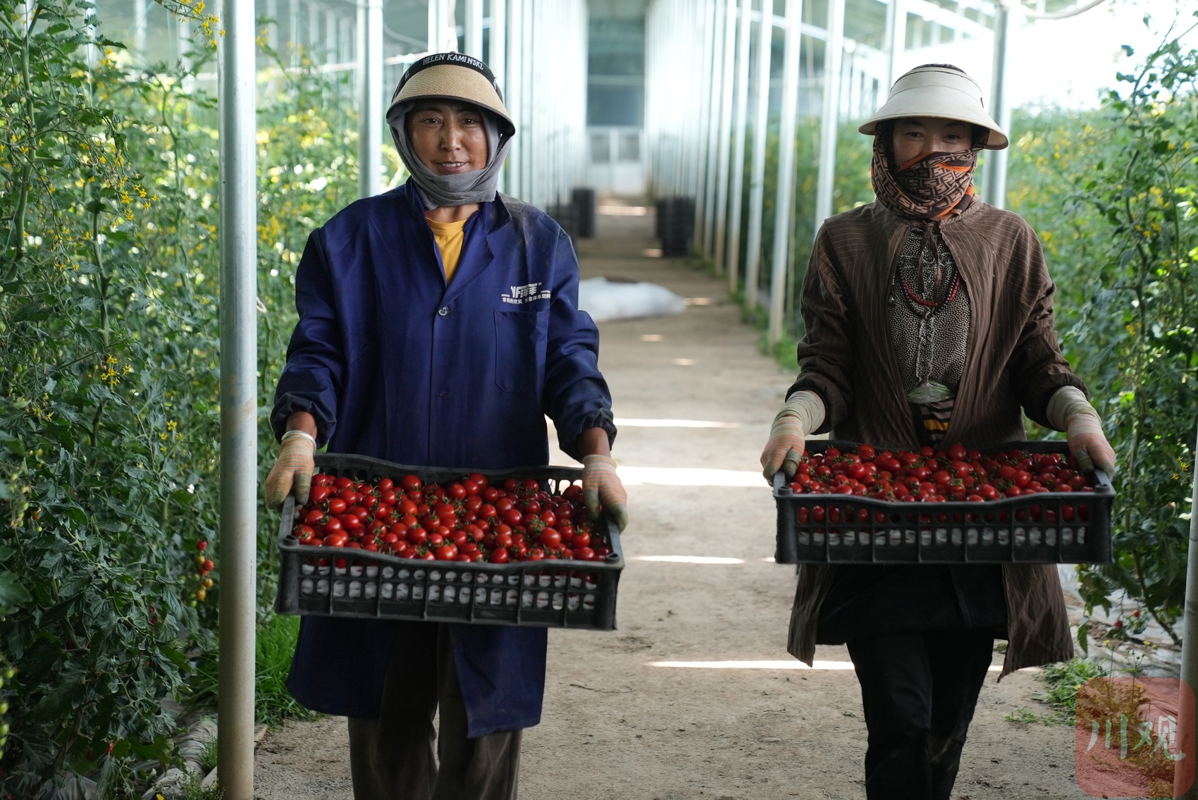 “我們這里產(chǎn)的高原水果小番茄,品質(zhì)極好?!焙罱ㄕf,該產(chǎn)業(yè)園海拔高達(dá)3000多米,是全國少有的高海拔果蔬種植基地。高原獨(dú)特的氣候和水土條件使得種植的水果小番茄口感細(xì)膩、帶有特別的清香,且甜度高。據(jù)介紹,今年該園區(qū)的水果小番茄預(yù)計(jì)產(chǎn)量有30余萬斤,主供四川省內(nèi)高端市場,預(yù)計(jì)能銷售到國慶節(jié)前后。