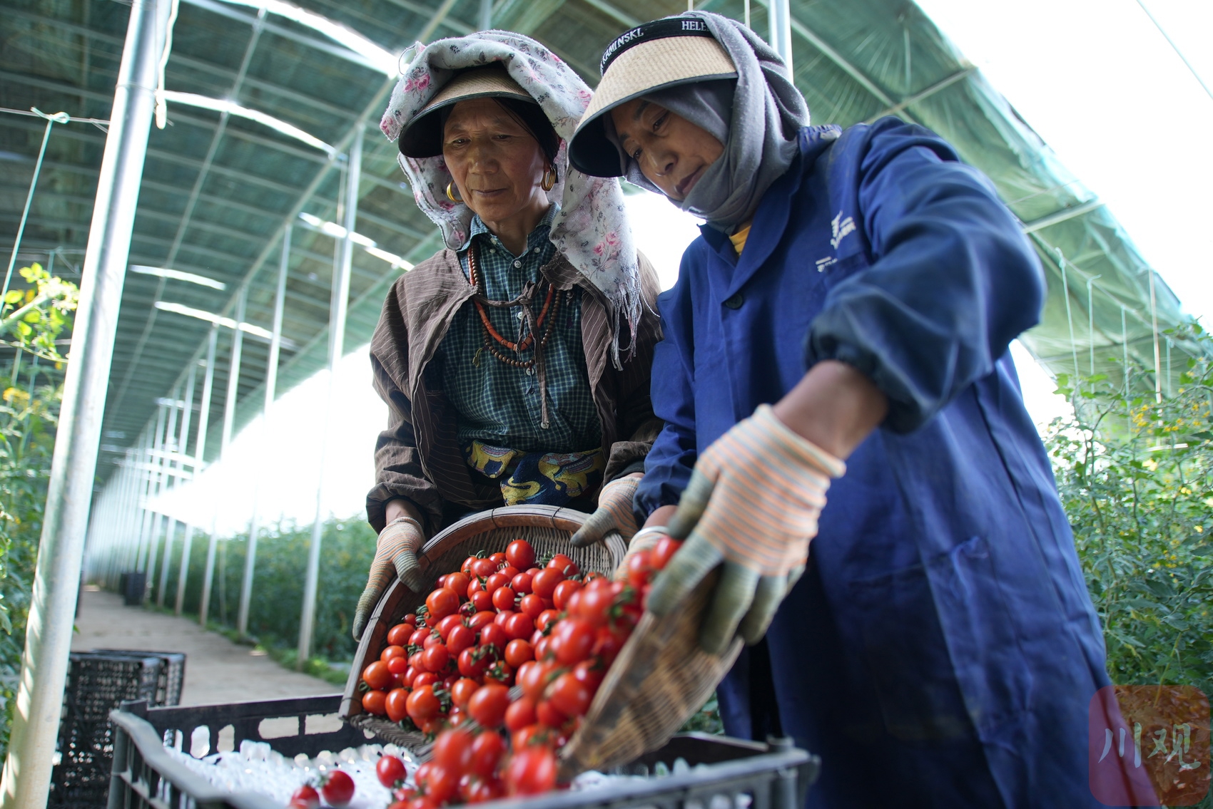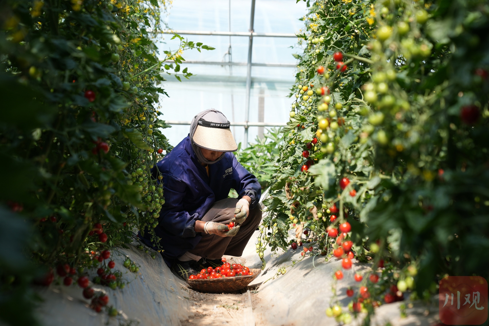 8月4日,松潘高原現(xiàn)代農(nóng)業(yè)產(chǎn)業(yè)園區(qū)內(nèi),豐收的高原水果小番茄進(jìn)入采摘期。