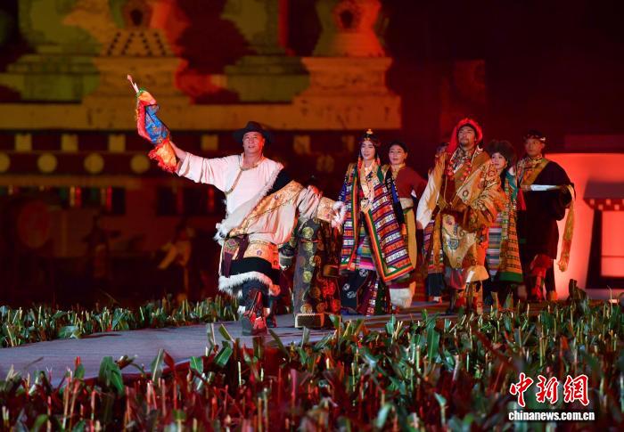 整場田園“瘋”裝秀共分為四個篇章。燈光秀一結(jié)束,第一篇章“夢中的香巴拉”情景劇緩緩啟幕。在悠揚(yáng)的藏族山歌中,村民們身穿傳統(tǒng)服飾,演繹著鄉(xiāng)城人民日常生活的幸福圖景:田間的辛勤勞作、豐收時洋溢的笑容……每一個場景都浸潤著濃濃的鄉(xiāng)情,仿佛將觀眾帶入真實(shí)而溫暖的田園生活。