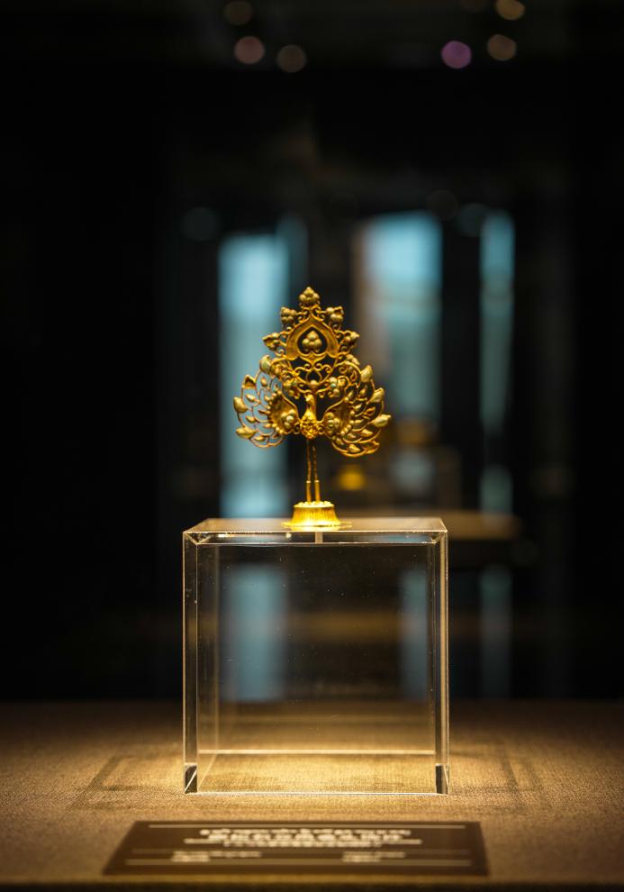 走進絲綢之路與青藏高原文明展廳,一件嵌松石立鳳金頭飾靜靜陳列在展柜中,金片捶揲而成的鳳凰羽翼豐滿,鳳凰展翅昂立的姿態(tài)吸引著游客紛紛駐足拍照。這件來自吐蕃時期的珍貴文物,以精湛的工藝成為博物館最受歡迎的展品之一。正是這件精美頭飾,去年作為“文化使者”遠赴法國,在唐代主題文物展中向歐洲觀眾展示了青藏高原的璀璨文明。