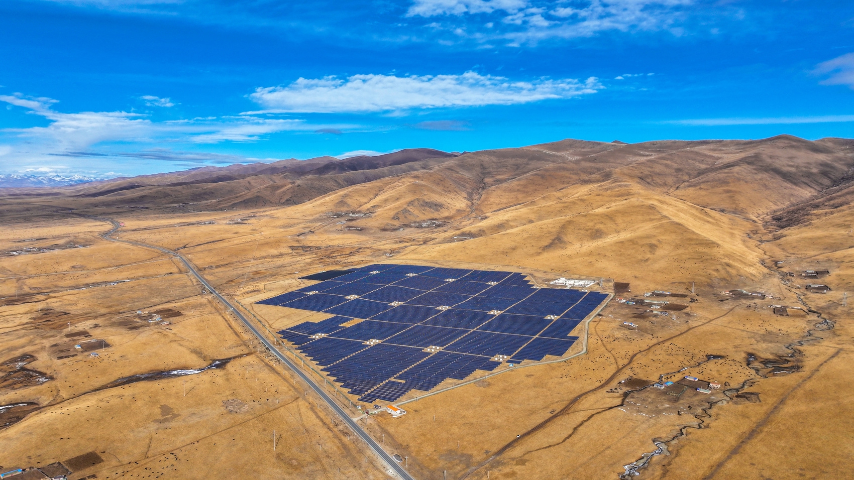 阿壩州阿壩縣蘭措瑪光伏電站航拍畫面。嚴(yán)易程 攝