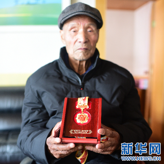 12月31日,吳多吉老人和他的“慶祝中華人民共和國成立70周年”紀念章。新華網(wǎng) 張宸 攝