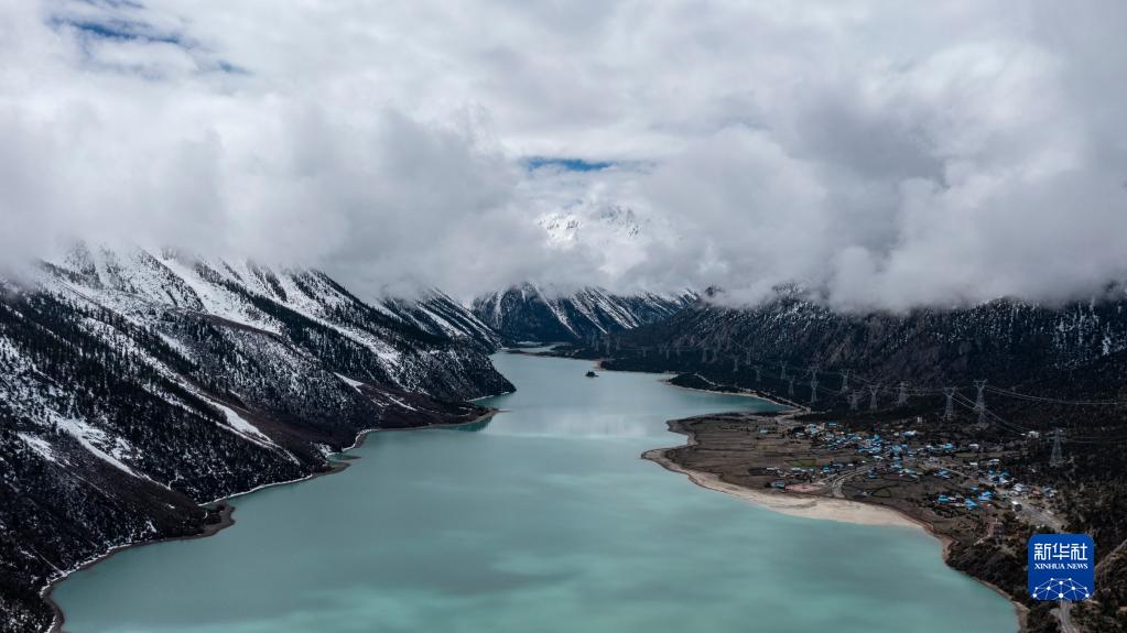 這是無人機(jī)拍攝的然烏湖(4月18日攝)。新華社記者 孫非 攝