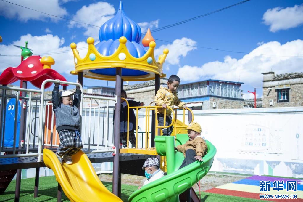 西藏措美縣卓德村幼兒園的小朋友們在課間玩耍。新華網 旦增努布 攝