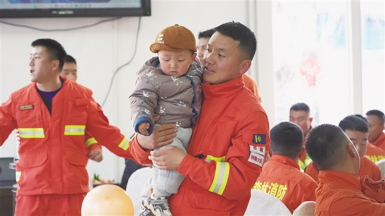 “沒事!我?guī)Ш⒆觼砜茨?。”這是仁增多吉愛人在電話中的話語。春節(jié)前夕,仁增多吉的愛人和兒子來到了專門為他們安排的公寓房里。房間里溫馨而舒適,配齊了水、電、氣等生活設(shè)施,還購買了米面油等生活必需品?!半m然結(jié)婚4年了,這還是第一次在你們單位過年,大隊想我們所想,讓我們一家人團聚,我們也深深地感受到了大隊對一線消防員的關(guān)懷?!比试龆嗉膼廴苏f道。