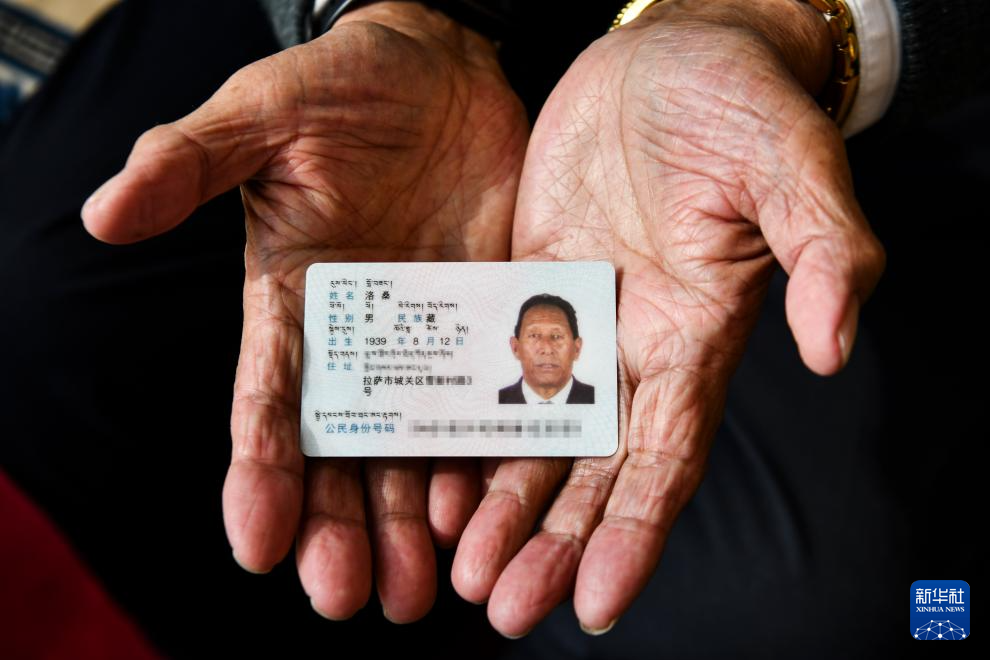 洛桑展示自己的身份證(2021年12月7日攝)。