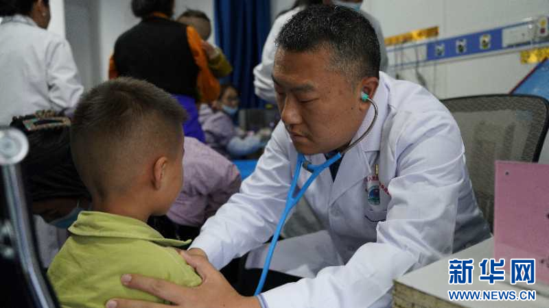 “心佑工程”團(tuán)隊(duì)成員正在對疑似先天性心臟病患兒進(jìn)行心超檢查(新華社發(fā))
