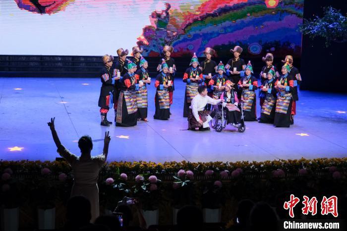 9月23日晚,西藏自治區(qū)首屆殘疾人文藝匯演在拉薩開演,來自西藏各市地的聽障、視障以及肢體殘疾群體紛紛登上舞臺(tái)一展風(fēng)姿,舞蹈、歌曲、手語等節(jié)目輪番上陣。圖為當(dāng)日演出現(xiàn)場。記者 江飛波 攝