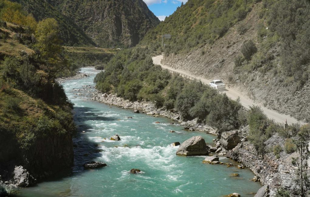 貢喬熱旦家的汽車行駛在回家的山路上(9月4日攝)。新華社記者 丁增尼達 攝