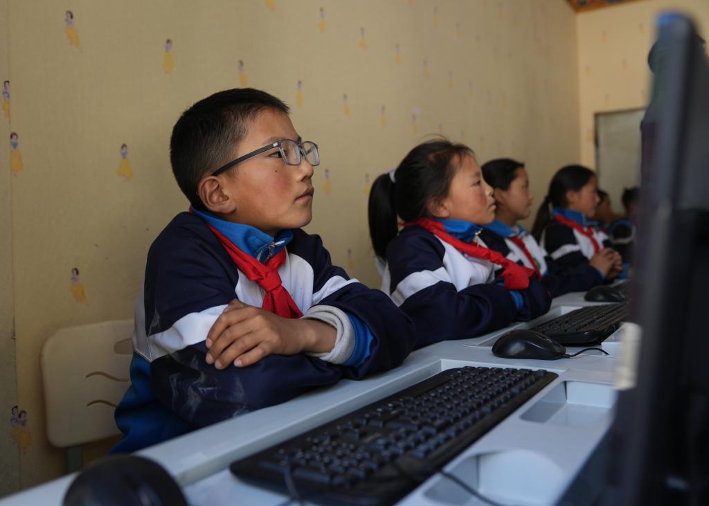 在娘蒲鄉(xiāng)中心小學(xué),貢喬熱旦在上計算機課(9月3日攝)。新華社記者 晉美多吉 攝