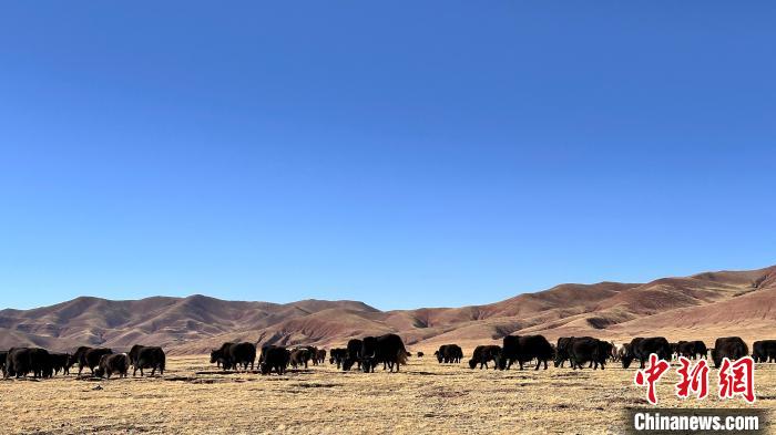 圖為散養(yǎng)牦牛在牧場悠閑吃草。謝牧 攝