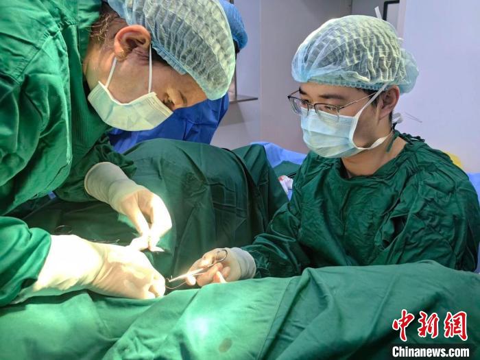 程偉業(yè)(右)進行外科手術(shù)中。浙江省人民醫(yī)院供圖