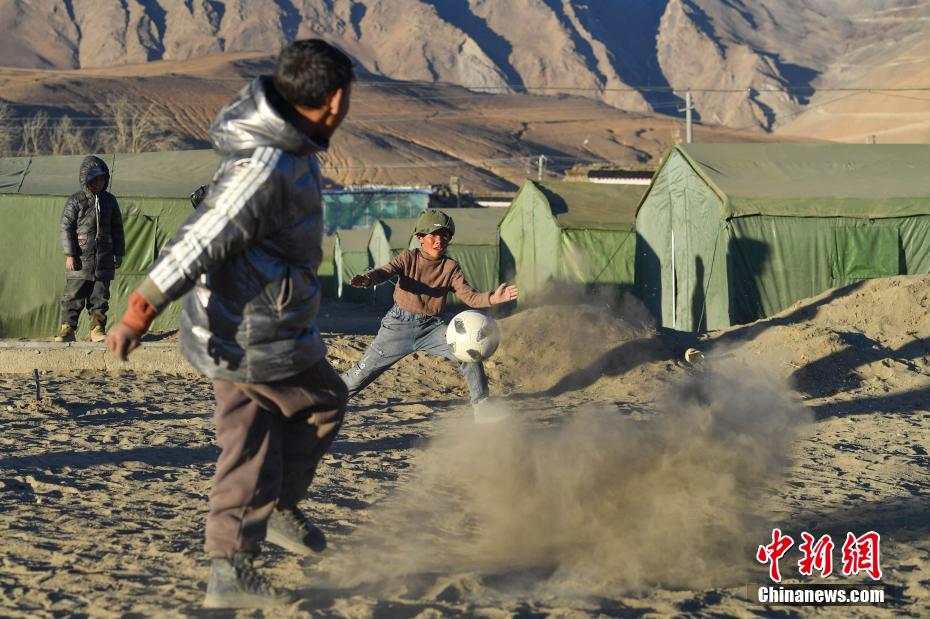 1月10日,在西藏日喀則市定日縣長(zhǎng)所鄉(xiāng)森嘎村安置點(diǎn),夕陽(yáng)下,孩子們分組開(kāi)展點(diǎn)球大戰(zhàn)。地震雖給村莊帶來(lái)傷痛,但安置點(diǎn)物資保障充足,孩子們?cè)谄D苦環(huán)境中仍保持樂(lè)觀,用簡(jiǎn)單的游戲傳遞著對(duì)生活的熱愛(ài)和希望。貢確 攝