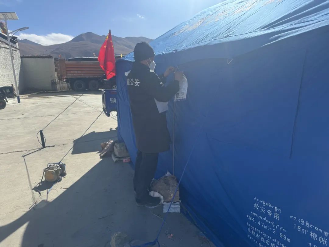 災(zāi)情如令,責(zé)任重于泰山。在這場爭分奪秒與時間賽跑的抗震救災(zāi)戰(zhàn)斗中,拉孜公安始終堅定地與群眾并肩同行,以“伴隨式”守護(hù)的帳篷警務(wù)室,為受災(zāi)群眾筑牢安全防線。一頂頂 “帳篷警務(wù)室” 以迅雷不及掩耳之勢搭建完成,恰似一座座堅固的堡壘;一面面鮮艷的黨旗在廢墟之上獵獵作響,傲然飄揚(yáng),它們共同構(gòu)成了守護(hù)受災(zāi)群眾生命財產(chǎn)安全的鋼鐵長城,成為抗震救災(zāi)戰(zhàn)場上一道令人動容的亮麗風(fēng)景線 。