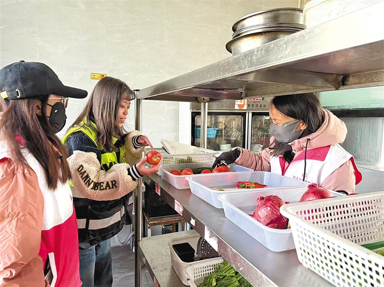 圖為活動中,工作人員在某餐館檢查食材新鮮度。 記者 孫開遠 索朗曲珍 攝