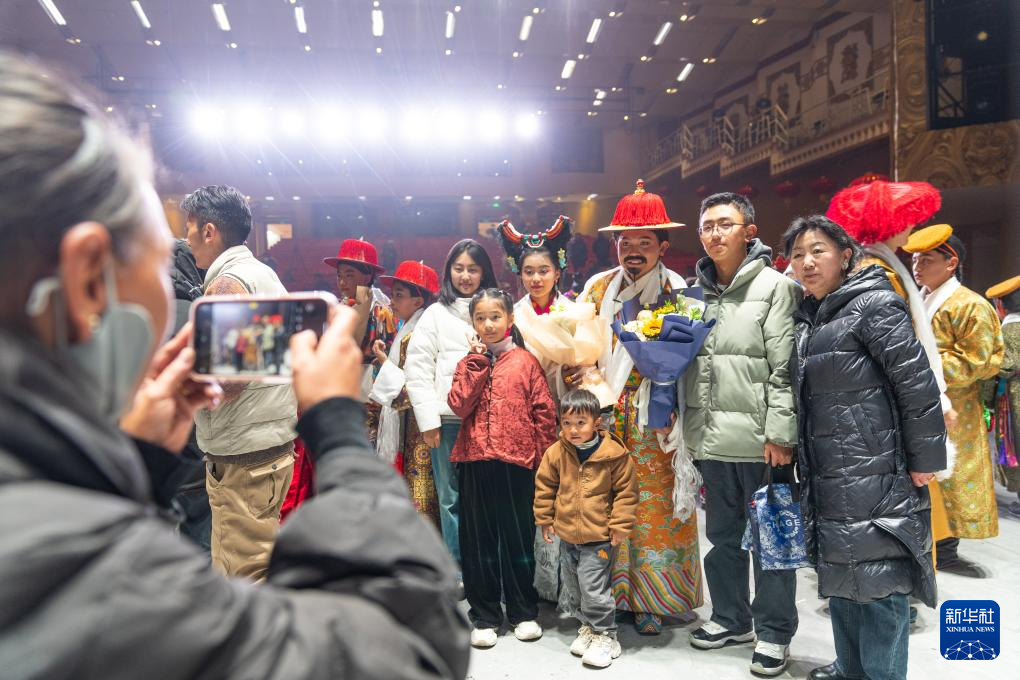 演出結束后小演員們與家人合影留念(2月11日攝)。新華社記者 丁增尼達 攝