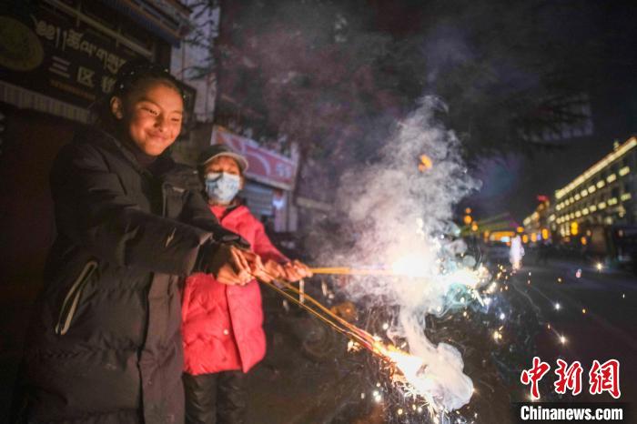藏歷新年是西藏傳統(tǒng)民俗活動,也是中國國家級非物質(zhì)文化遺產(chǎn)。2月27日,西藏迎來一年一度的藏歷新年古突夜(類似春節(jié)的除夕),如今過古突夜,西藏民眾在點(diǎn)燃火把的同時,也會燃放煙花,古城拉薩煙花璀璨。圖為2月27日晚,孩子們在拉薩街頭燃放煙花,慶祝藏歷新年的到來。中新社記者 江飛波 攝