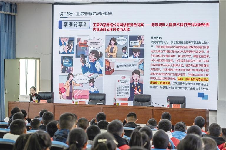當日上午10時30分,未成年人網(wǎng)絡(luò)保護領(lǐng)域?qū)<疑蛞U以《未成年人網(wǎng)絡(luò)保護條例》為重點,圍繞網(wǎng)上交友、游戲充值、網(wǎng)絡(luò)欺凌、個人信息泄露等典型案例,深入淺出地向拉薩市第二高級中學的同學們講解了網(wǎng)絡(luò)行為的法律邊界和潛在風險,演講引人入勝,學生們踴躍發(fā)言,氛圍很是熱烈。