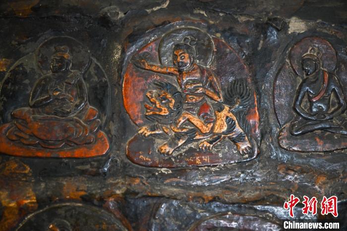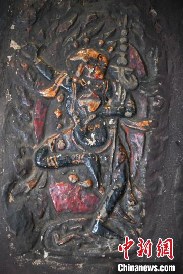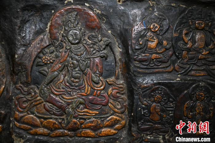 4月27日,記者探訪了當(dāng)雄縣貢堂鄉(xiāng)沖嘎爾村康馬寺的瑪尼拉康。瑪尼拉康是該寺除修行洞之外的早期宗教活動(dòng)場所,也是寺院里最古老的建筑。這里保存著令人驚嘆的石刻造像墻,這些石刻距今已有三百年歷史?,斈崂低庥^普通,但其室內(nèi)六面墻上整齊地貼滿了浮雕石刻板,共計(jì)1213塊(僅一塊缺失)。石刻內(nèi)容豐富,涵蓋了藏傳佛教各宗各派的本尊、祖師、佛母菩薩等,造型多姿多樣,線條清晰流暢。這處石刻造像墻對(duì)于研究西藏傳統(tǒng)雕刻、藏傳佛教以及歷史具有重大意義。中新社記者 貢嘎來松 攝