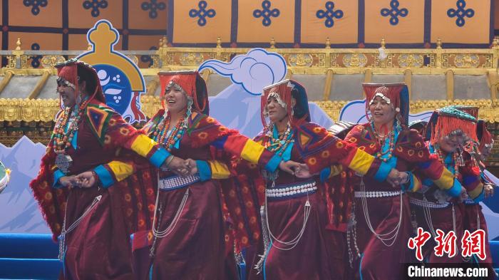圖為西藏阿里地區(qū)札達縣退休老干部宣舞隊表演古格宣《洛欽白瑪次仁》。貢桑拉姆 攝